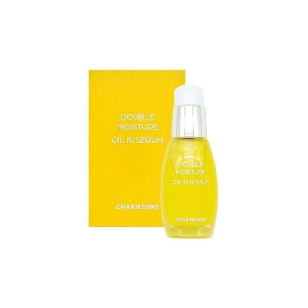 Charmzone Double Moisture Oil In Serum provides double moisturizing effect. A fresh serum that uses camellia and evening primrose oils to moisturize dry and rough skin. With concentrated moisture, evening primrose oil instantly soothes the skin, and camellia oil provides excellent nutrient boost. The thick, oil serum absorbs deeply into the skin, spreads easily and softly moisturizing the dry skin.
