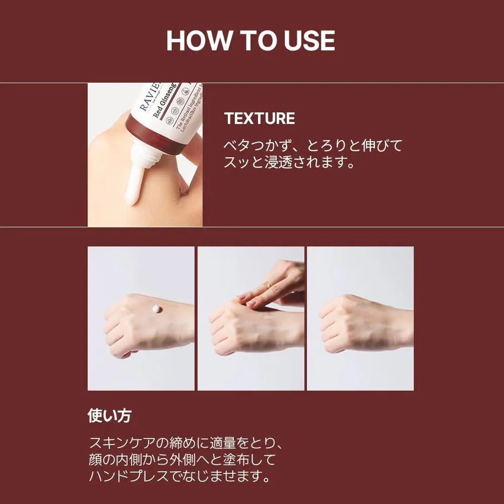 The raviel red ginseng retinol firming cream helps enhance skin elasticity, while the Lacto-bacillus ingredient helps aid in strengthening the skin barrier.
