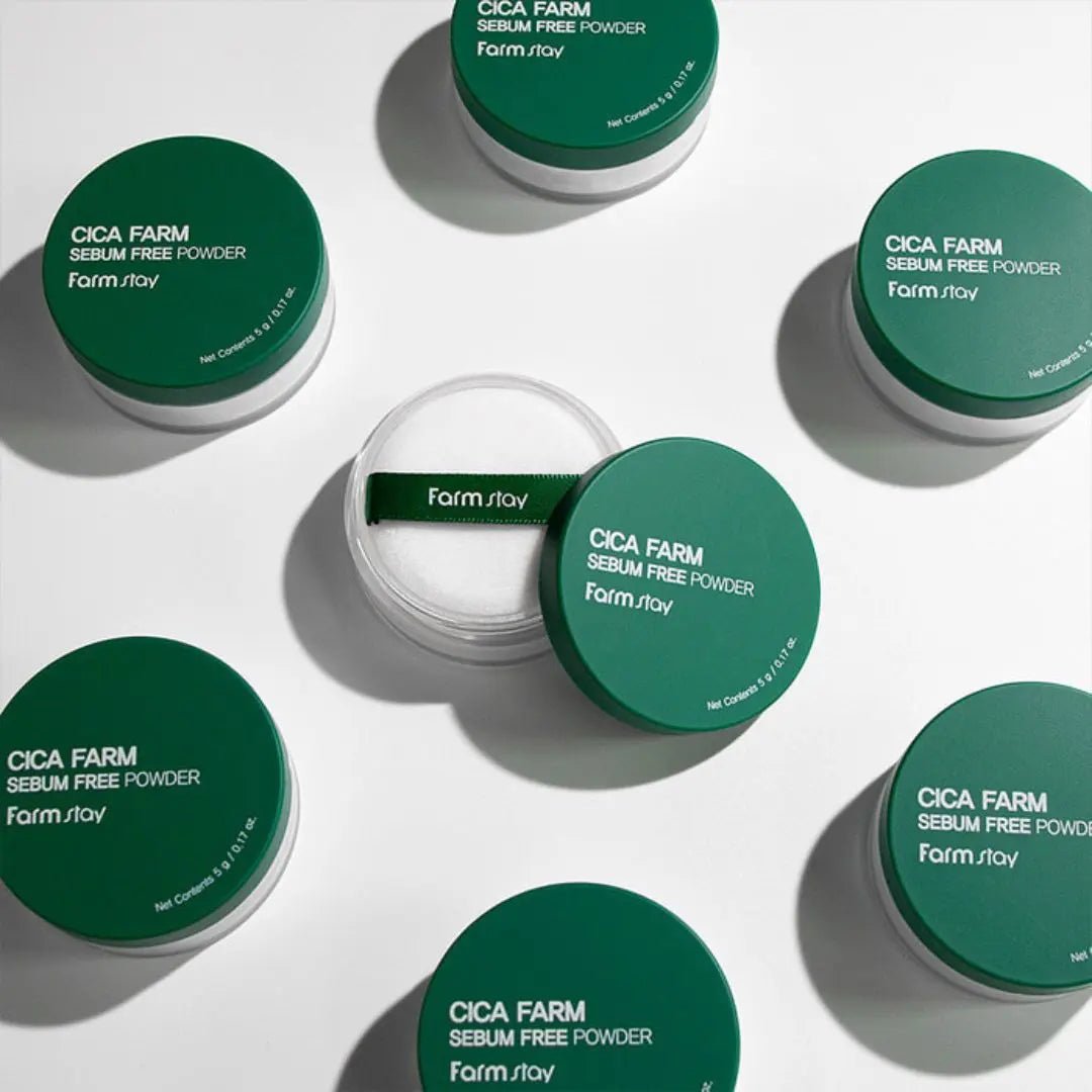 Farmstay Cica Farm Sebum Free Powder effectively masks imperfections, leaving skin with a silky smooth, matte finish. Its light and transparent texture nourishes and soothes the skin without drying it out or clogging pores. This powder is suitable for all skin types, with a special focus on oily and combination or sensitive skin types. Enriched with Asian centella extract, it not only eliminates excess sebum but also promotes recovery processes for damaged areas.