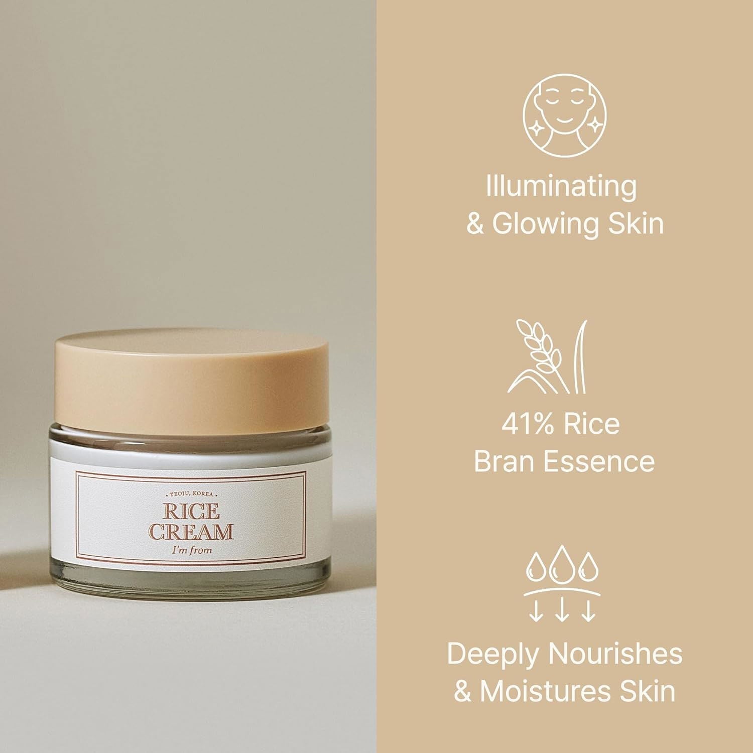 I'm From Rice Cream is a moisturizer formulated with rice bran extract rich in ceramides. It brightens skin, improves skin tone, replenishes and protects the skin’s moisture barrier, deeply hydrating and nourishing skin.