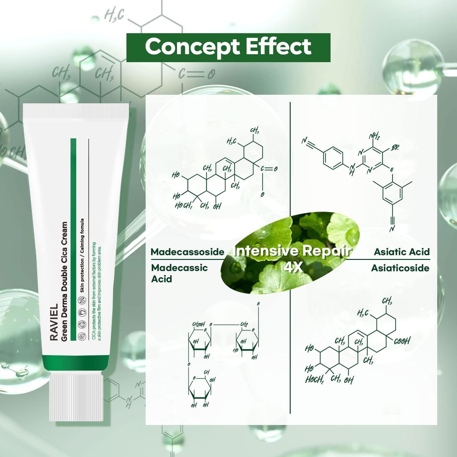 - Centella Asiatica Extract(Cica) and Madecassoside help protect the skin from external factors that can cause skin damage by forming a skin protective film