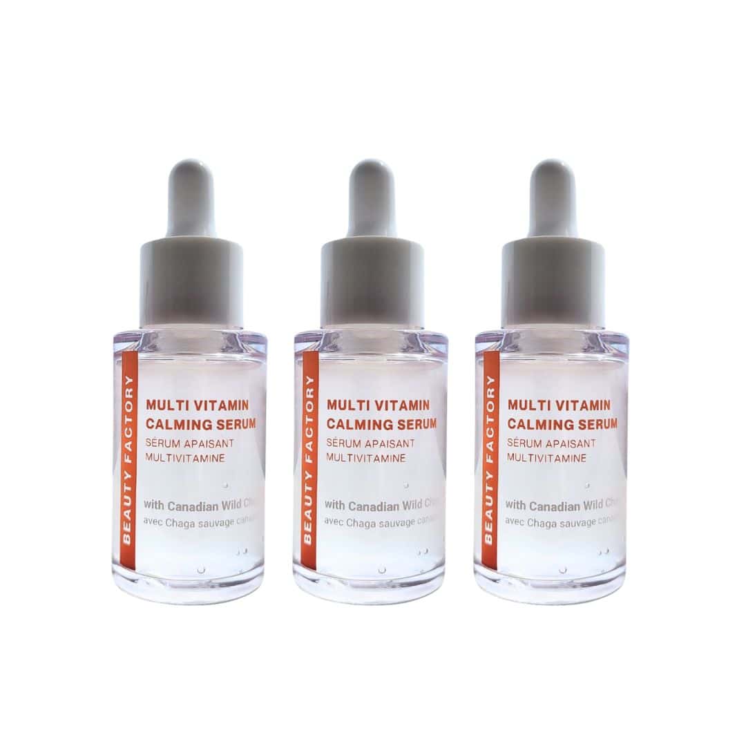 Beauty Factory Multi Vitamin Calming Serum helps reduce dark spots and inflammation while supporting the repair and revitalization of damaged skin cells. This vitamin calming serum is formulated with Canadian Wild Chaga Extract for intense hydration and promoting healthy and radiant skin. It also contains antioxidant properties from lemon, green tea, cucumber, and tea tree extract to further reduce inflammation and dark spots.