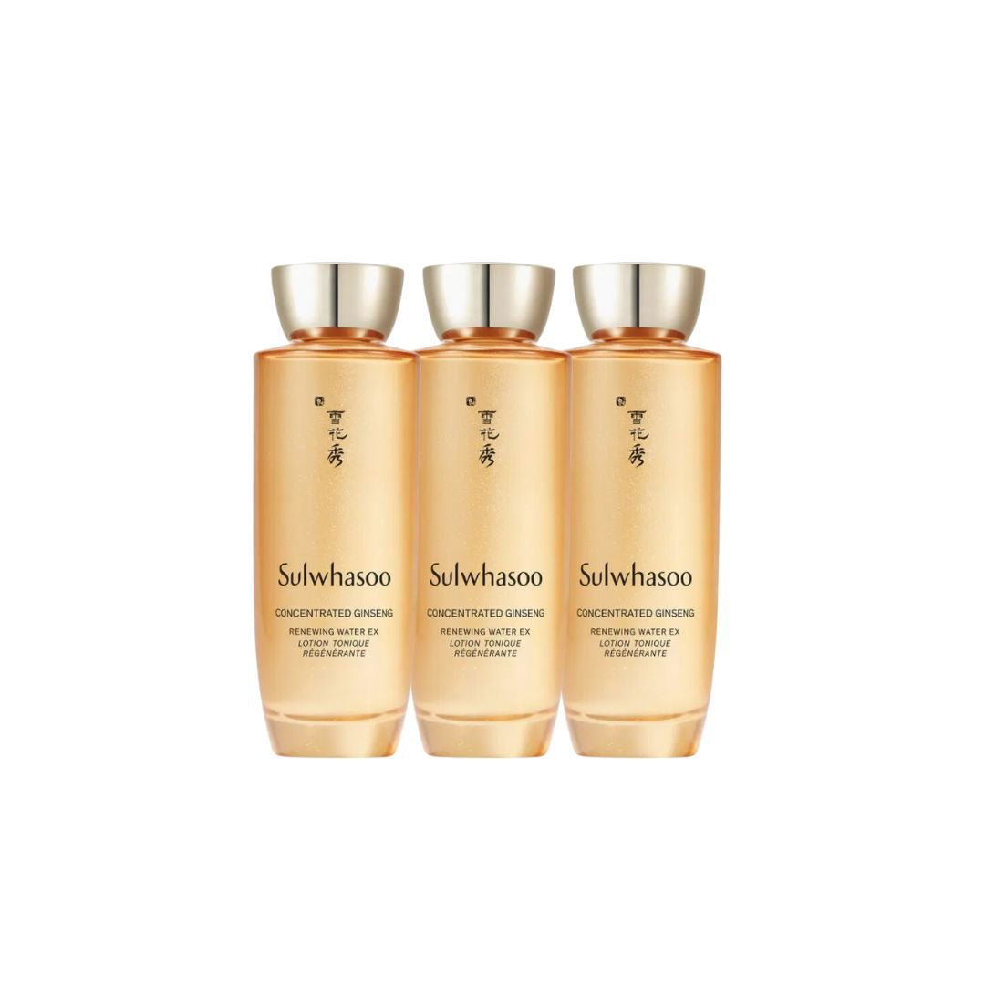 SULWHASOO Concentrated Ginseng Renewing Water EX is a powerful anti-aging toner that revitalizes the skin with Sulwhasoo's unique GINSENOMICS™ formula. With Sulwhasoo's Steamed Ginseng Water Concentrate™, this toner provides rich nourishment and moisture extracted from Ginseng. Produced with advanced technology, the Steamed Ginseng Water Concentrate™ is now 1.5 times more effective than before, creating a visibly stronger and more radiant skin foundation.