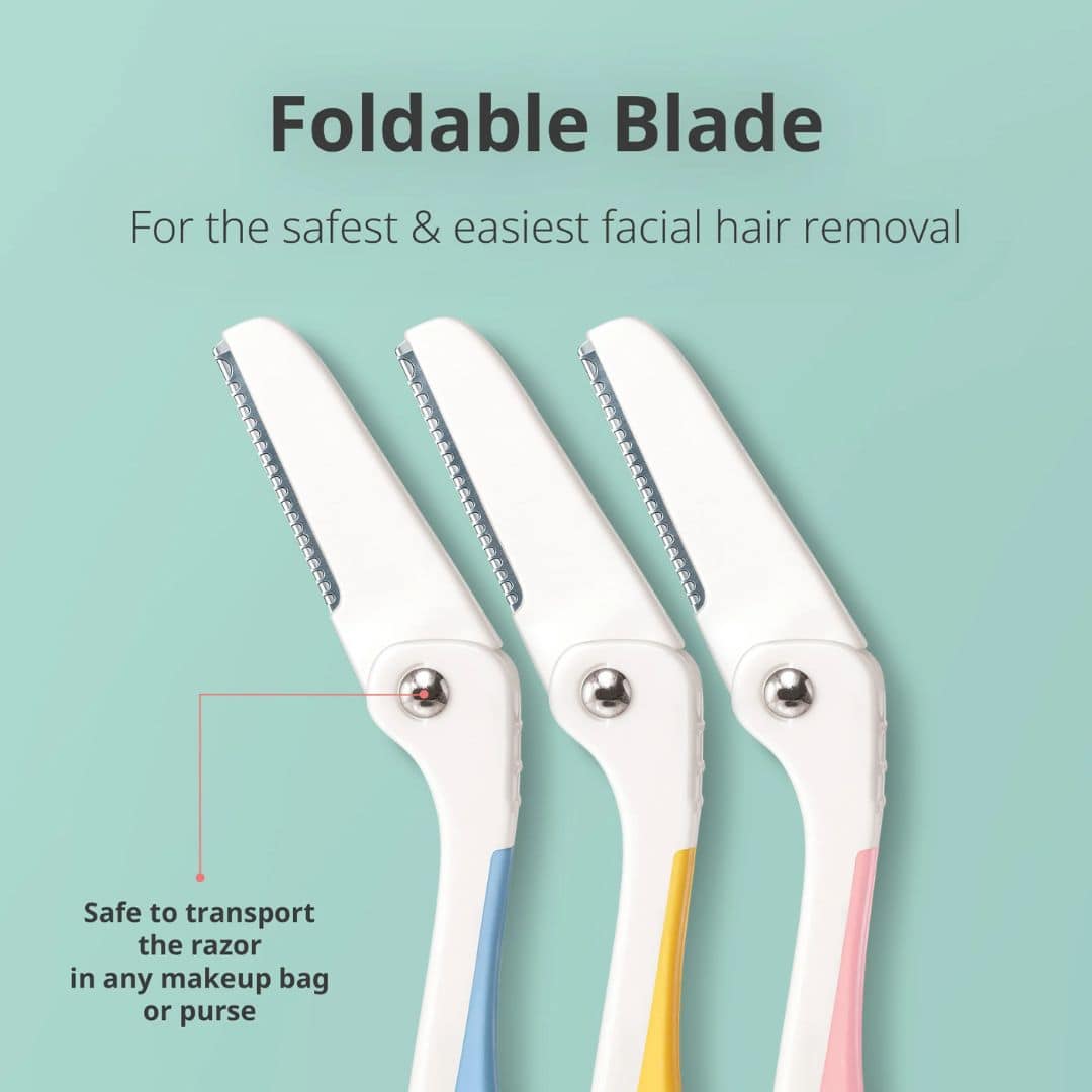DORCO Shai Safe For Eyebrow is a single-blade razor specifically designed for precise eyebrow shaping, removing fine hairs, and achieving smooth skin. This folding-type razor features a single precision blade, ensuring safe and accurate shaping while delicately shaving for perfectly defined brows. Its protective skin guard prevents irritations on sensitive skin and the rubber handle offers a secure grip for easy portability.